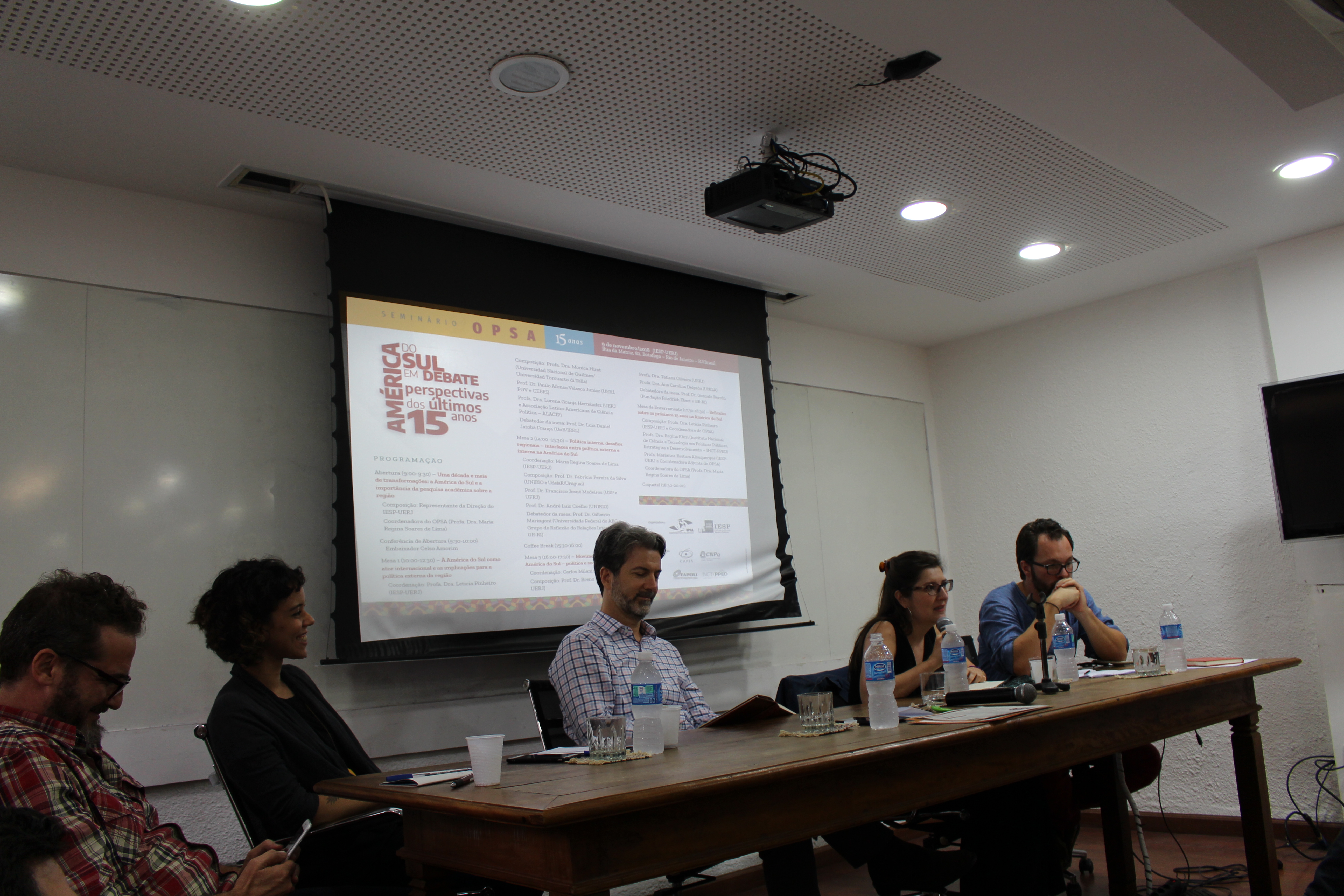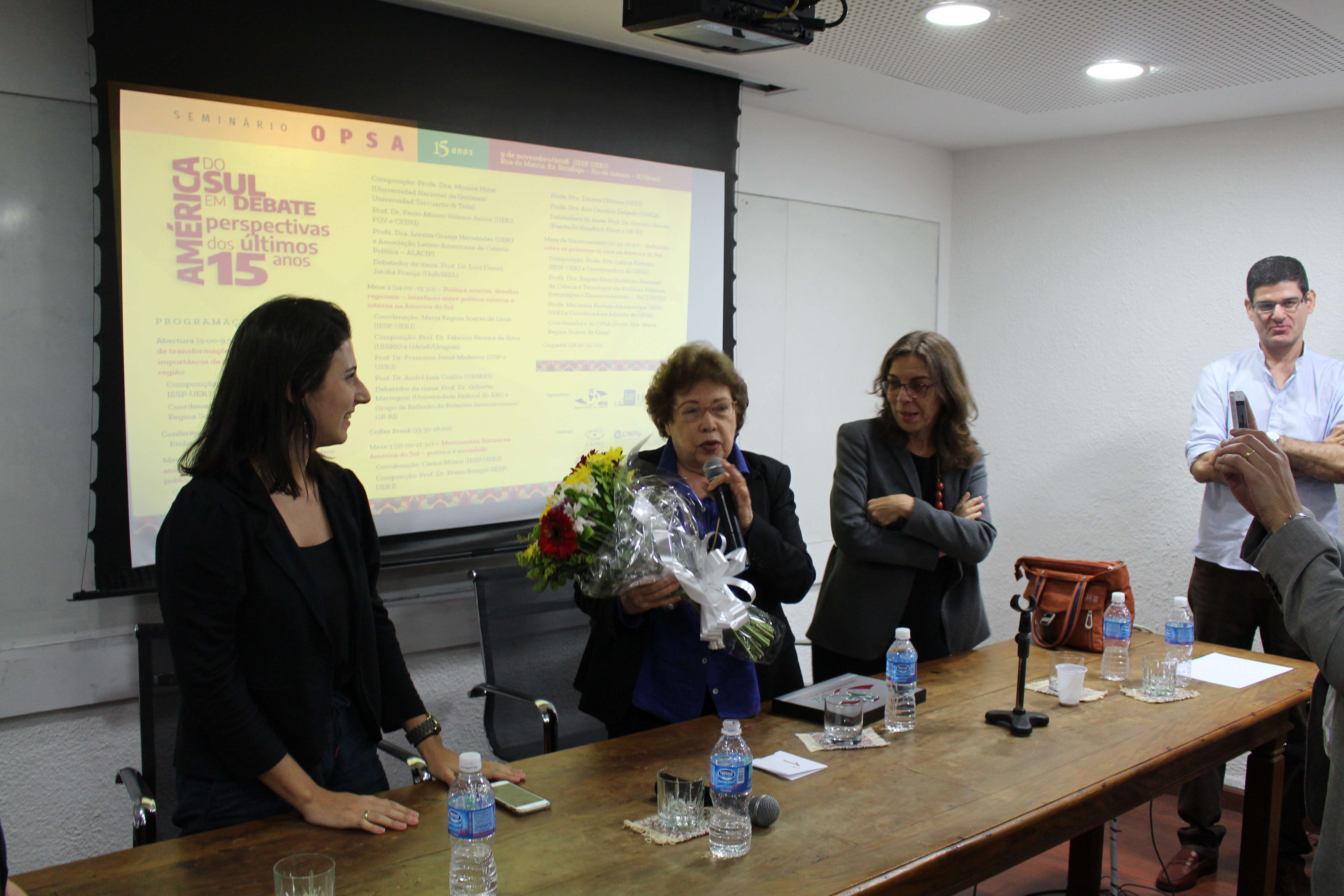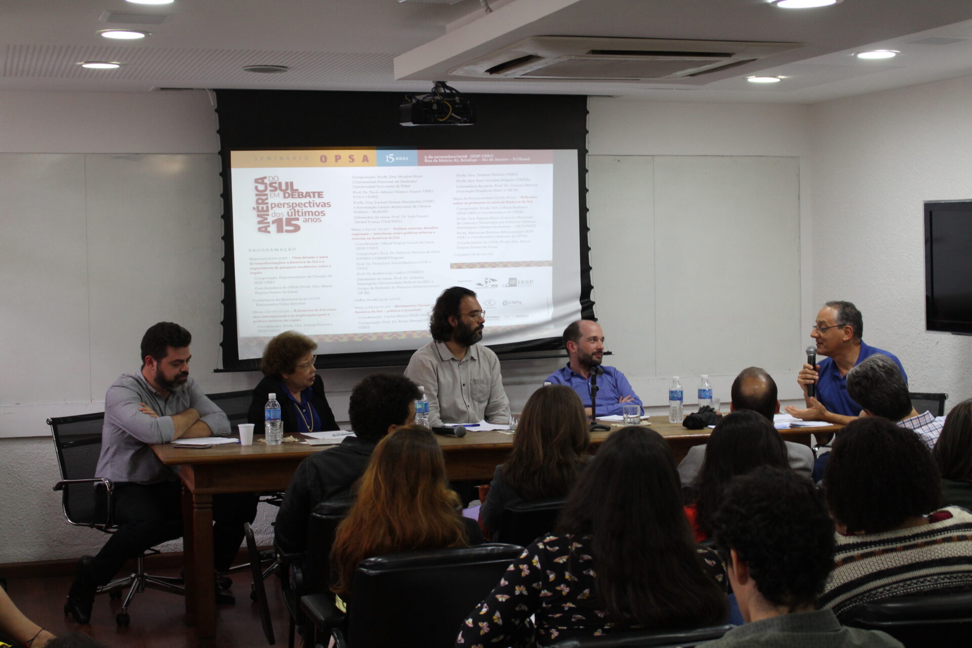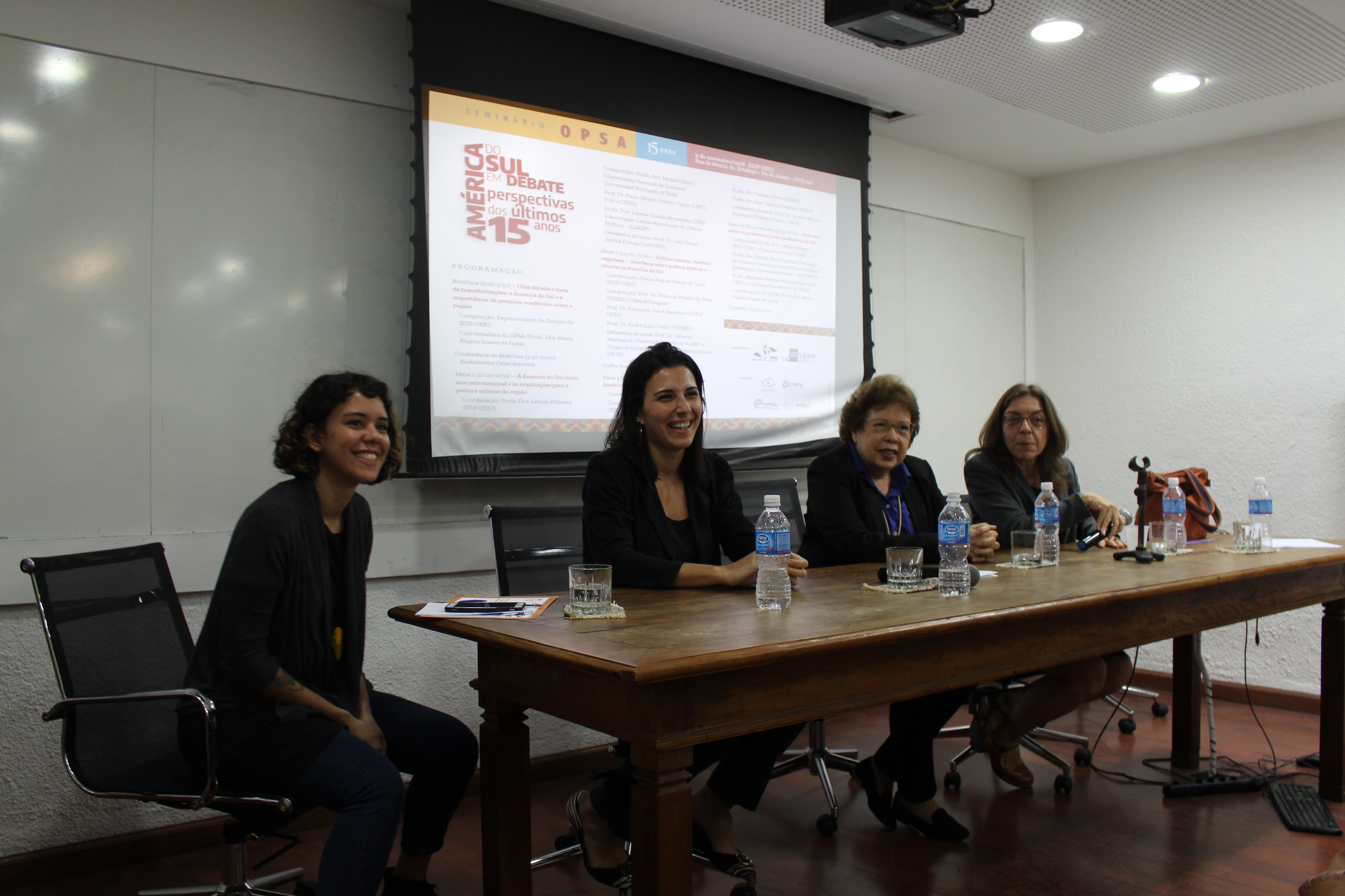 No dia 9 de novembro de 2018 foi realizado o “Seminário OPSA 15 anos – América do Sul em debate: perspectivas dos últimos 15 anos”. O evento contou com conferência de abertura do Embaixador Celso Amorim, além de diversas mesas de debates com professores convidados, muitos deles ex-pesquisadores do OPSA. Em sua mesa final, foi realizada uma homenagem surpresa à coordenadora do OPSA Maria Regina Soares de Lima.