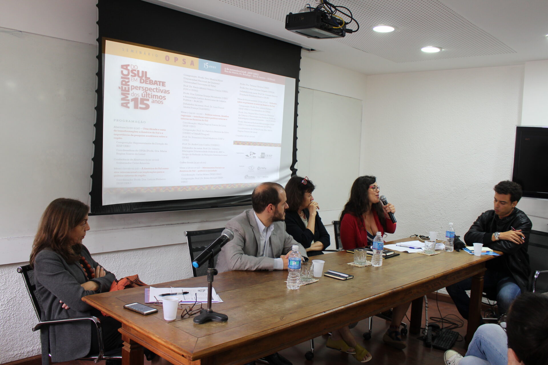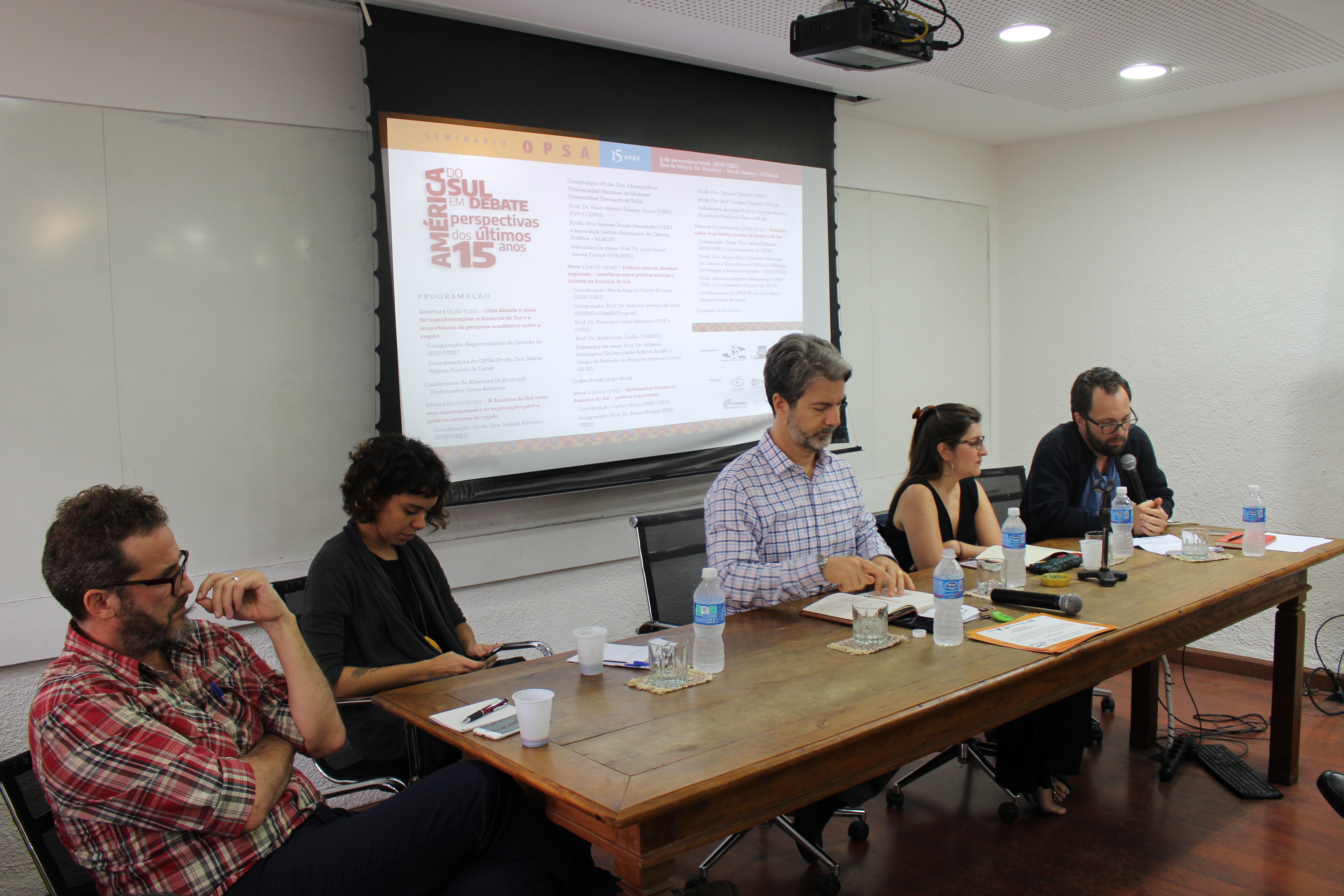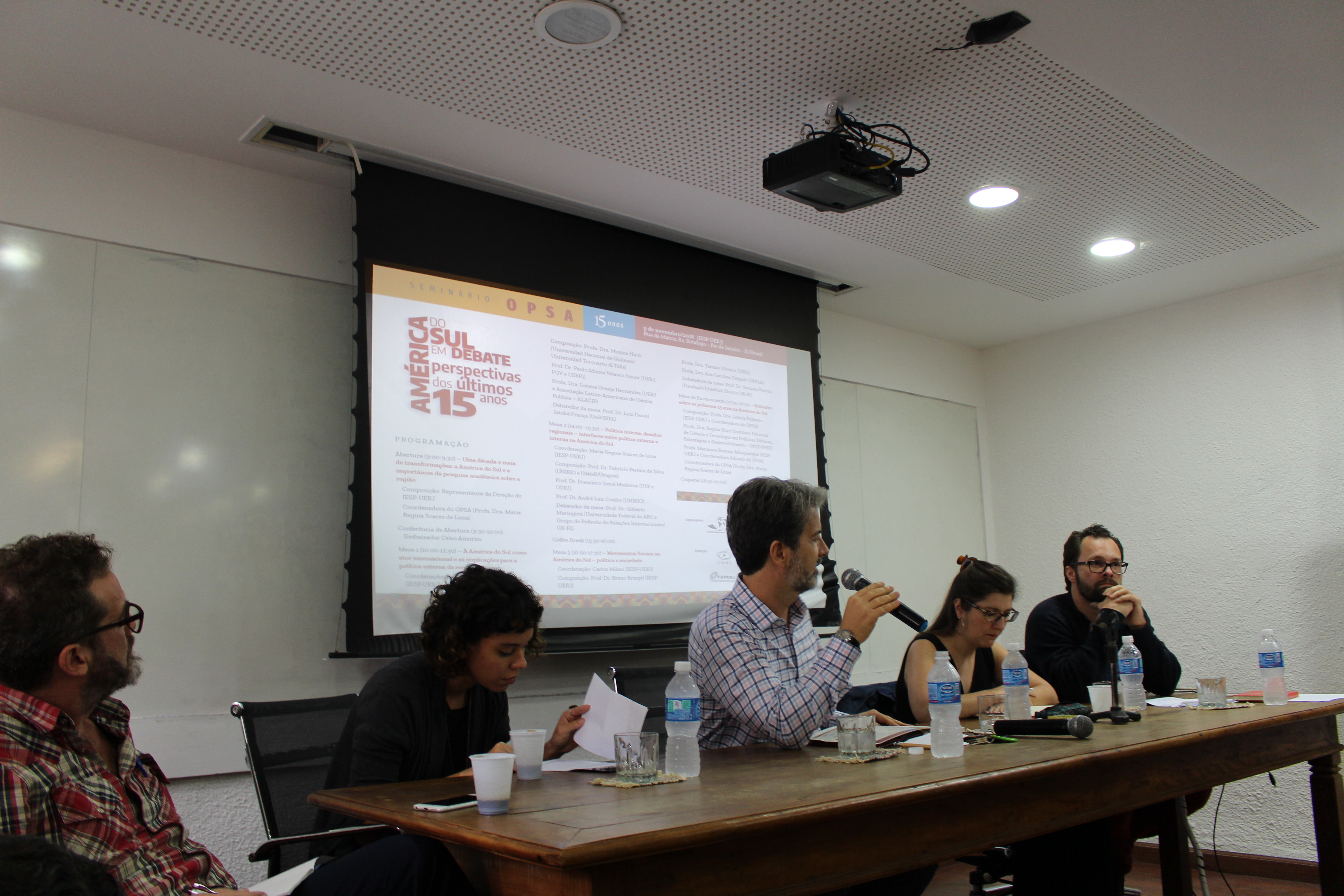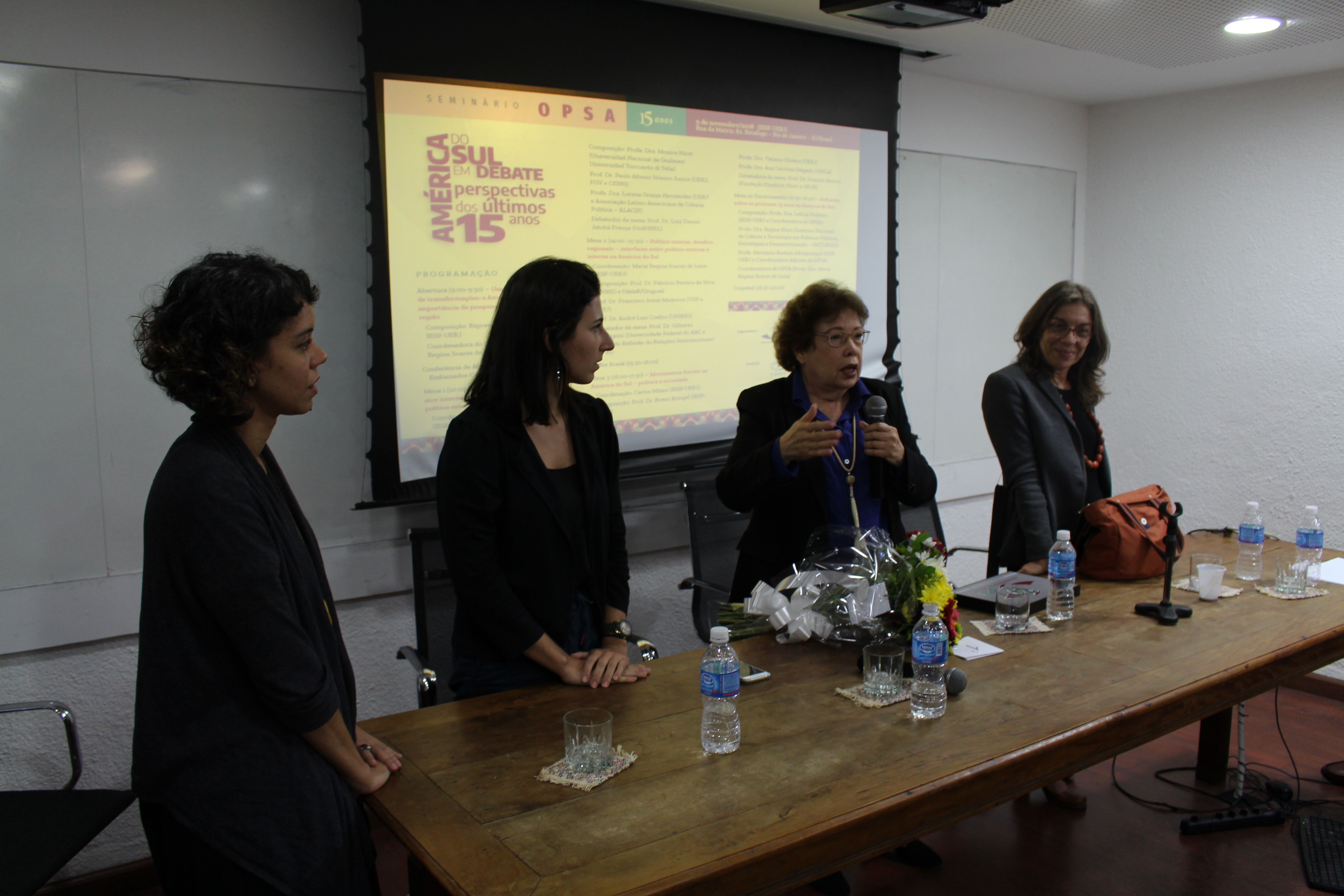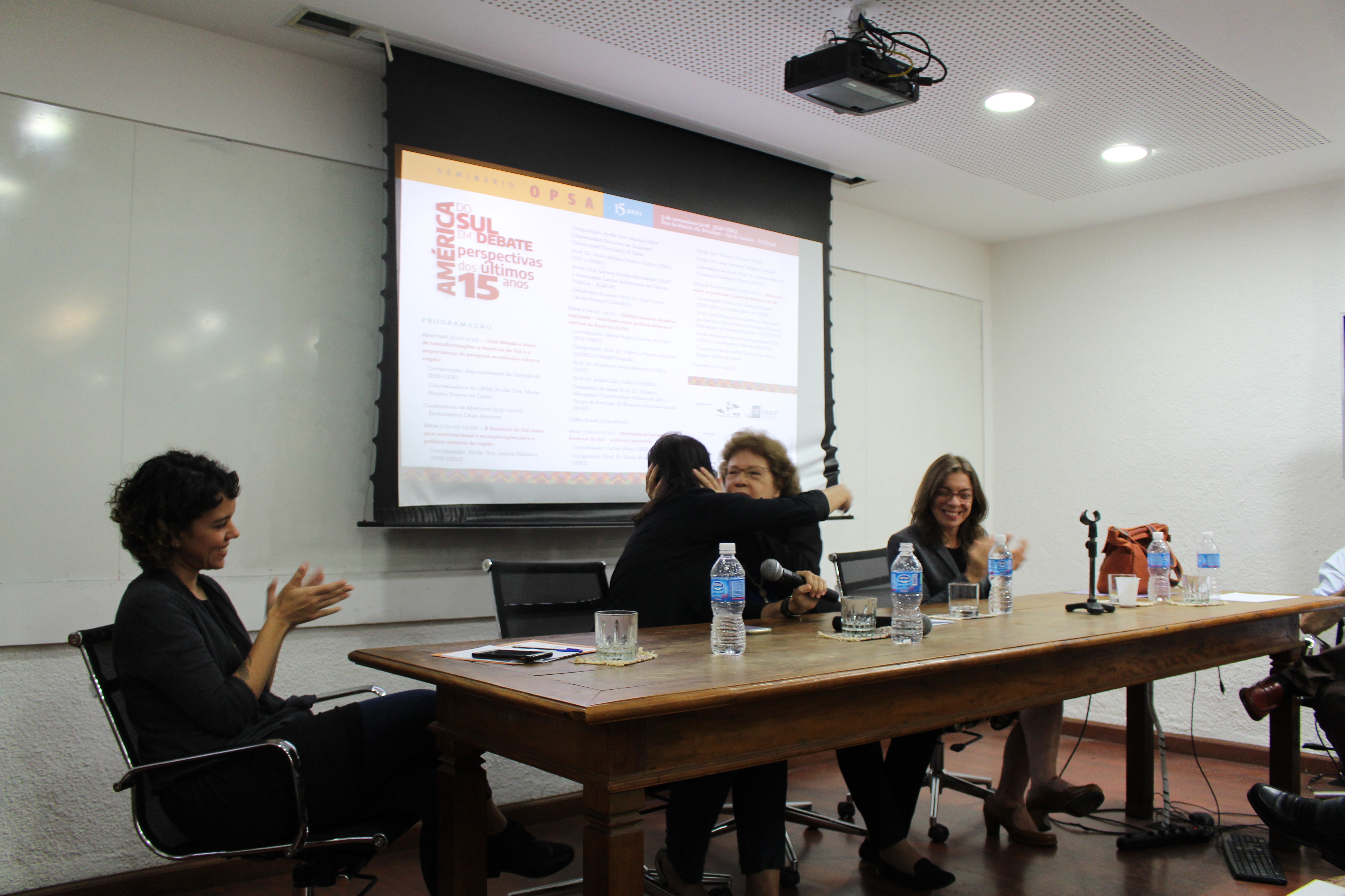 No dia 9 de novembro de 2018 foi realizado o “Seminário OPSA 15 anos – América do Sul em debate: perspectivas dos últimos 15 anos”. O evento contou com conferência de abertura do Embaixador Celso Amorim, além de diversas mesas de debates com professores convidados, muitos deles ex-pesquisadores do OPSA. Em sua mesa final, foi realizada uma homenagem surpresa à coordenadora do OPSA Maria Regina Soares de Lima.