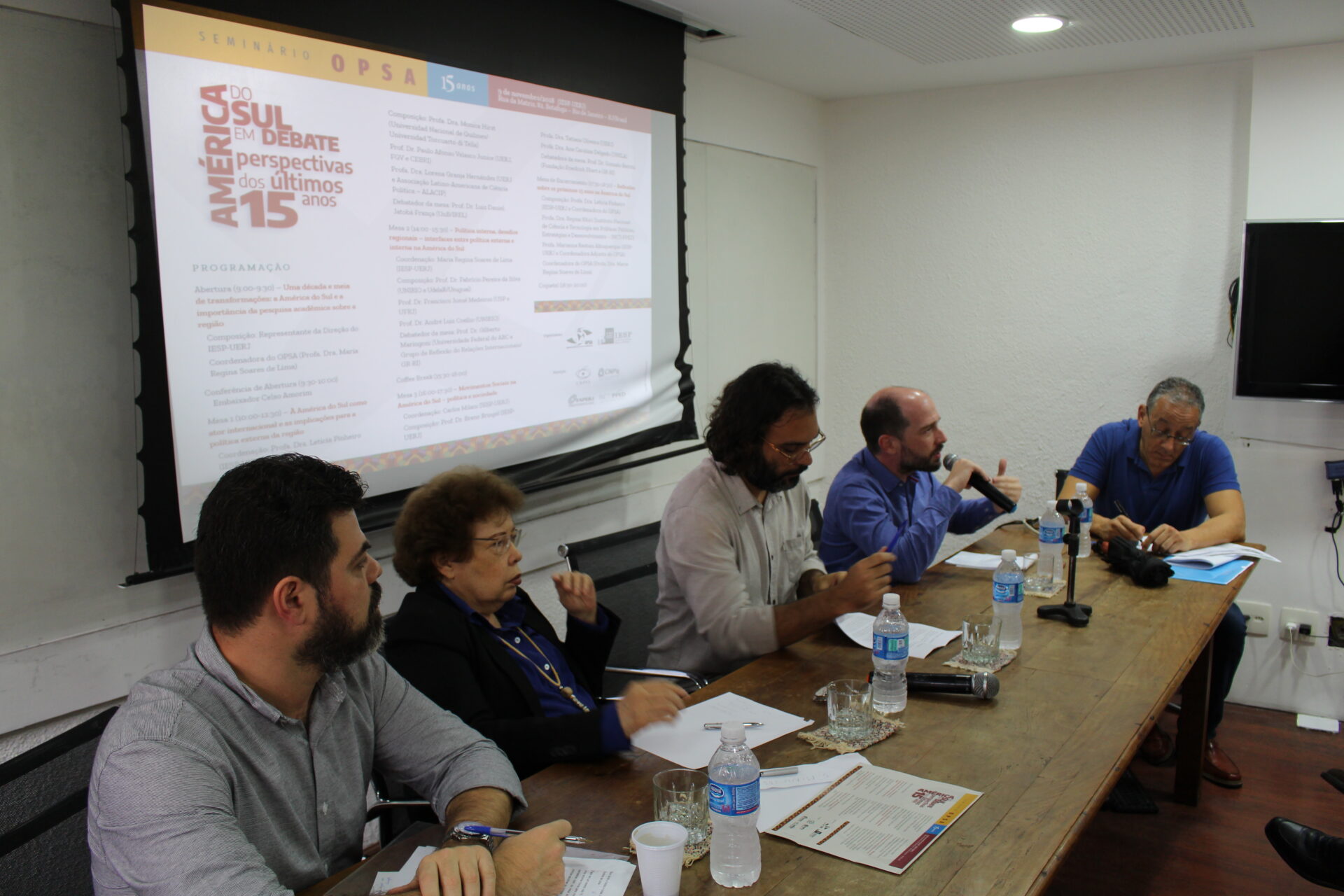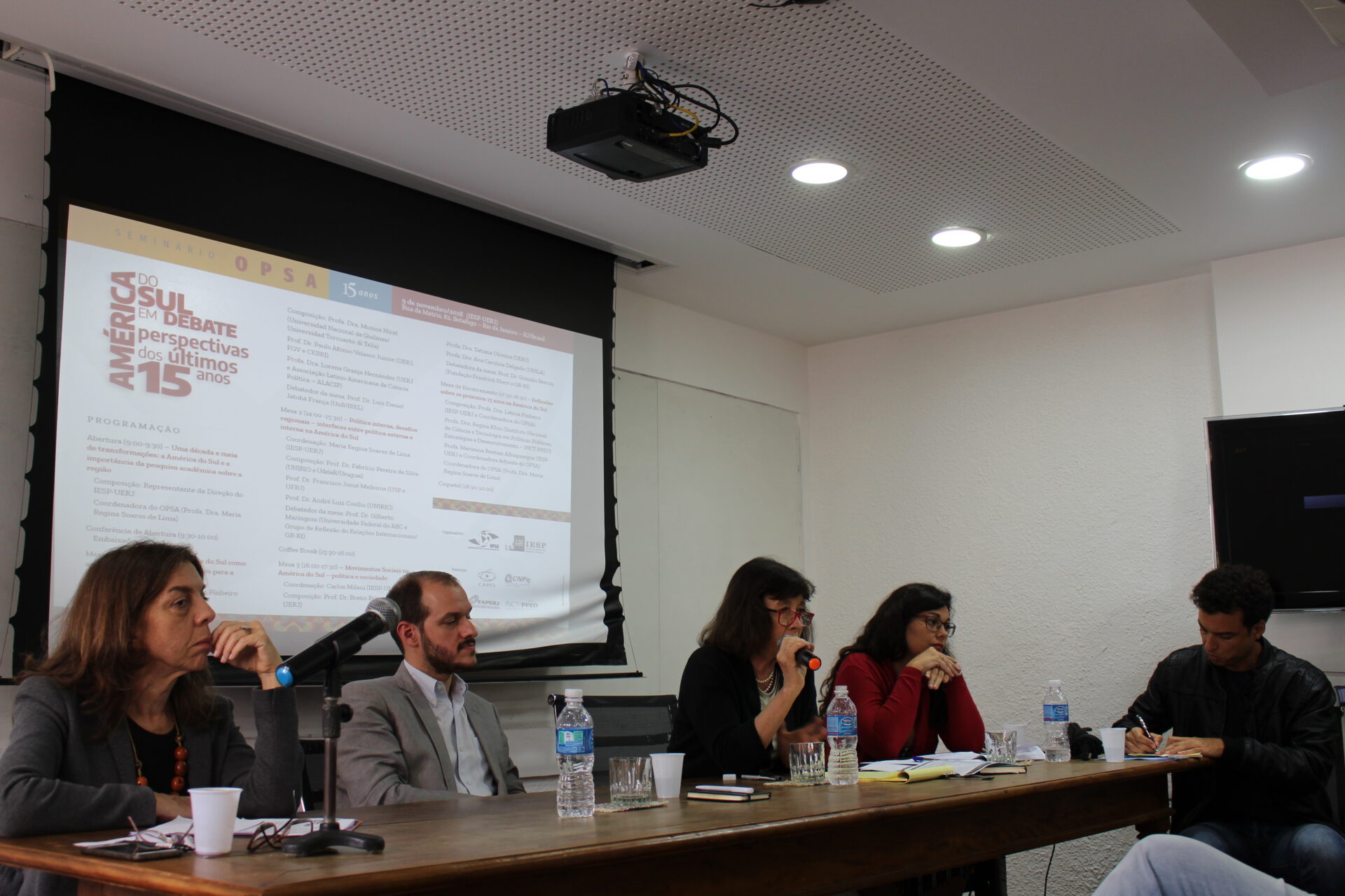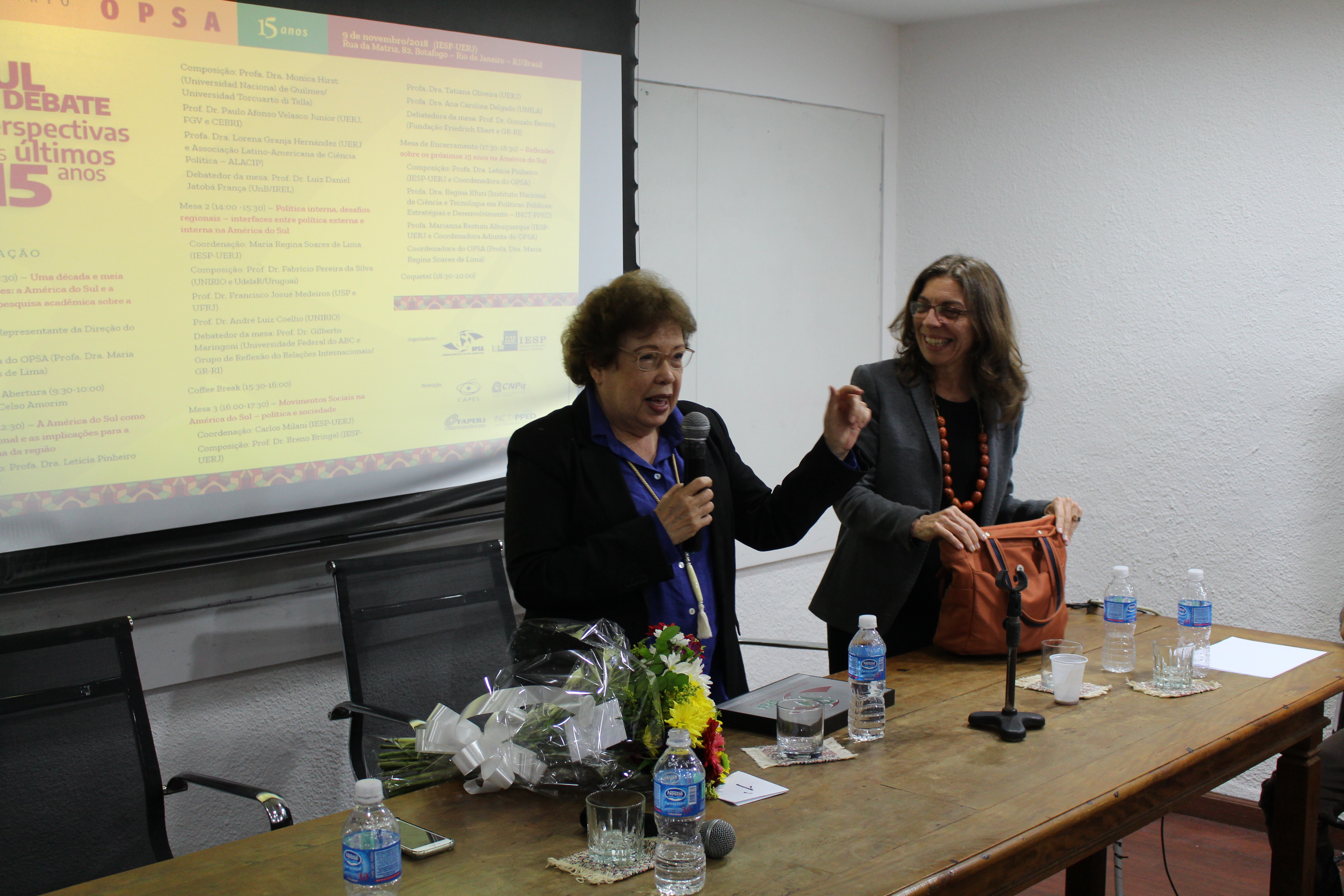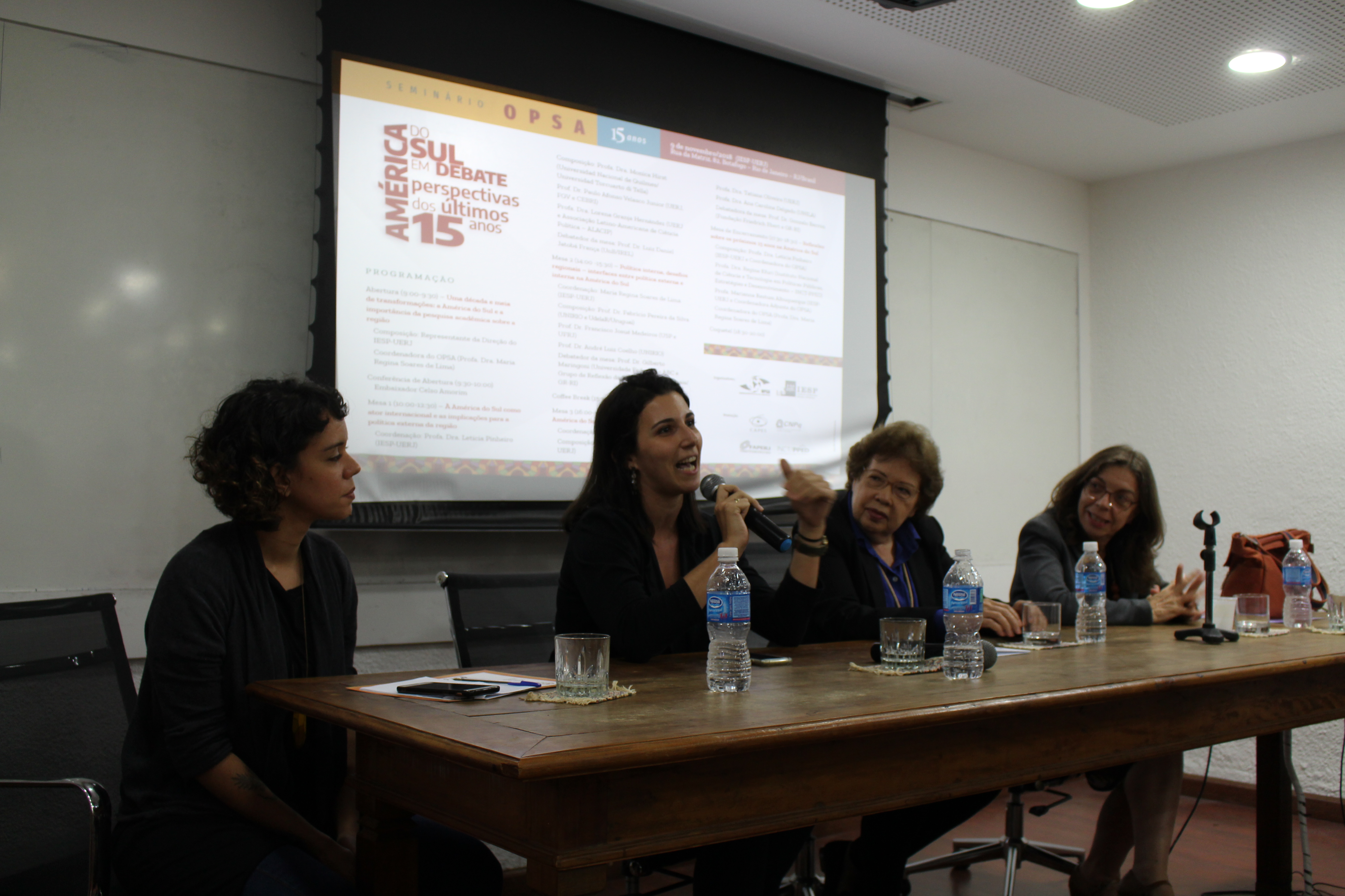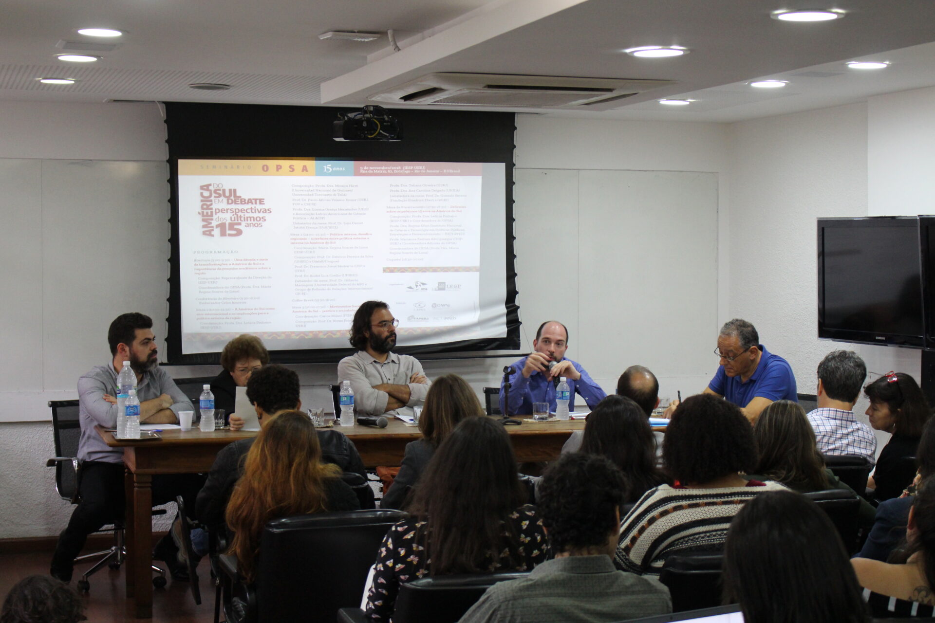 No dia 9 de novembro de 2018 foi realizado o “Seminário OPSA 15 anos – América do Sul em debate: perspectivas dos últimos 15 anos”. O evento contou com conferência de abertura do Embaixador Celso Amorim, além de diversas mesas de debates com professores convidados, muitos deles ex-pesquisadores do OPSA. Em sua mesa final, foi realizada uma homenagem surpresa à coordenadora do OPSA Maria Regina Soares de Lima.