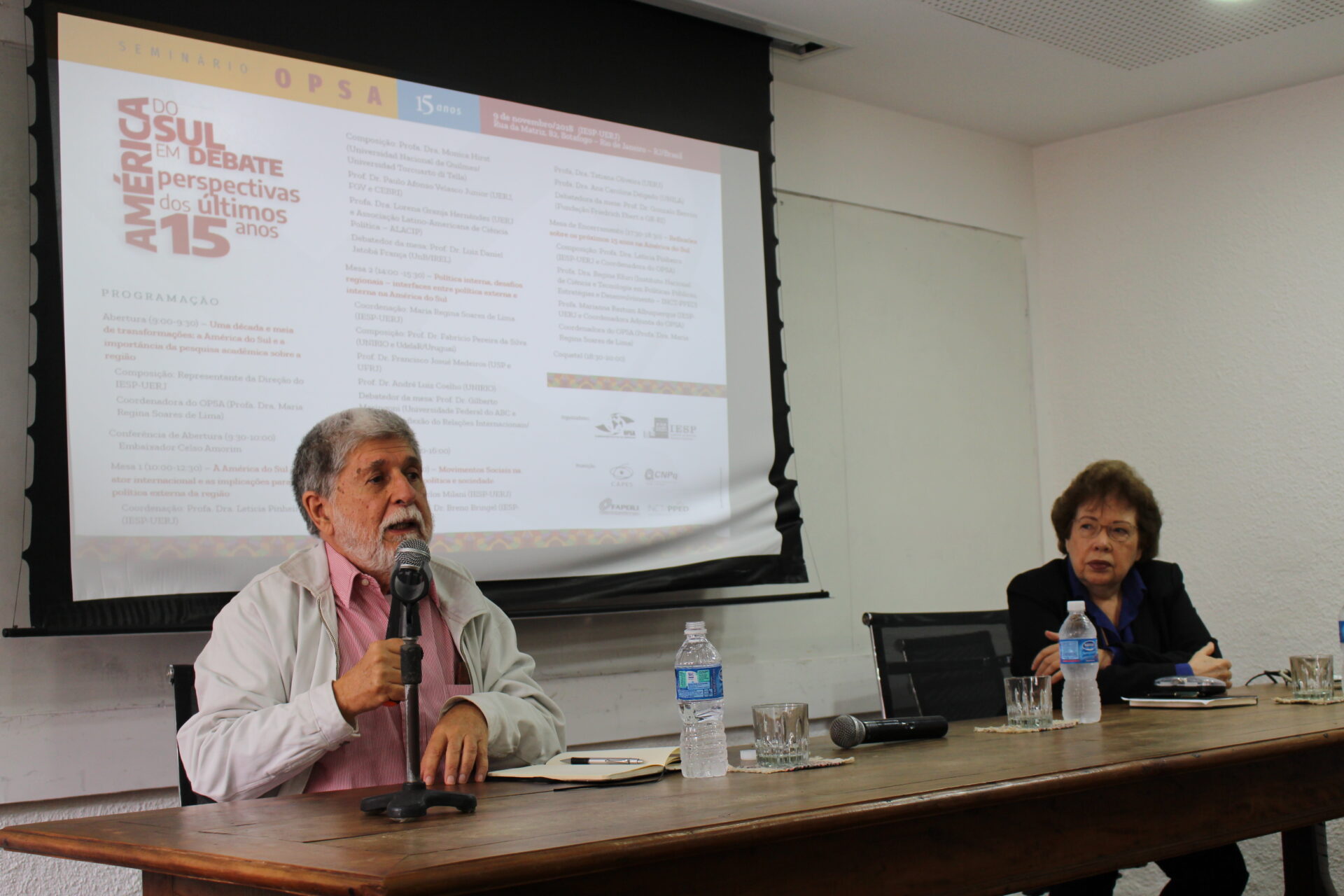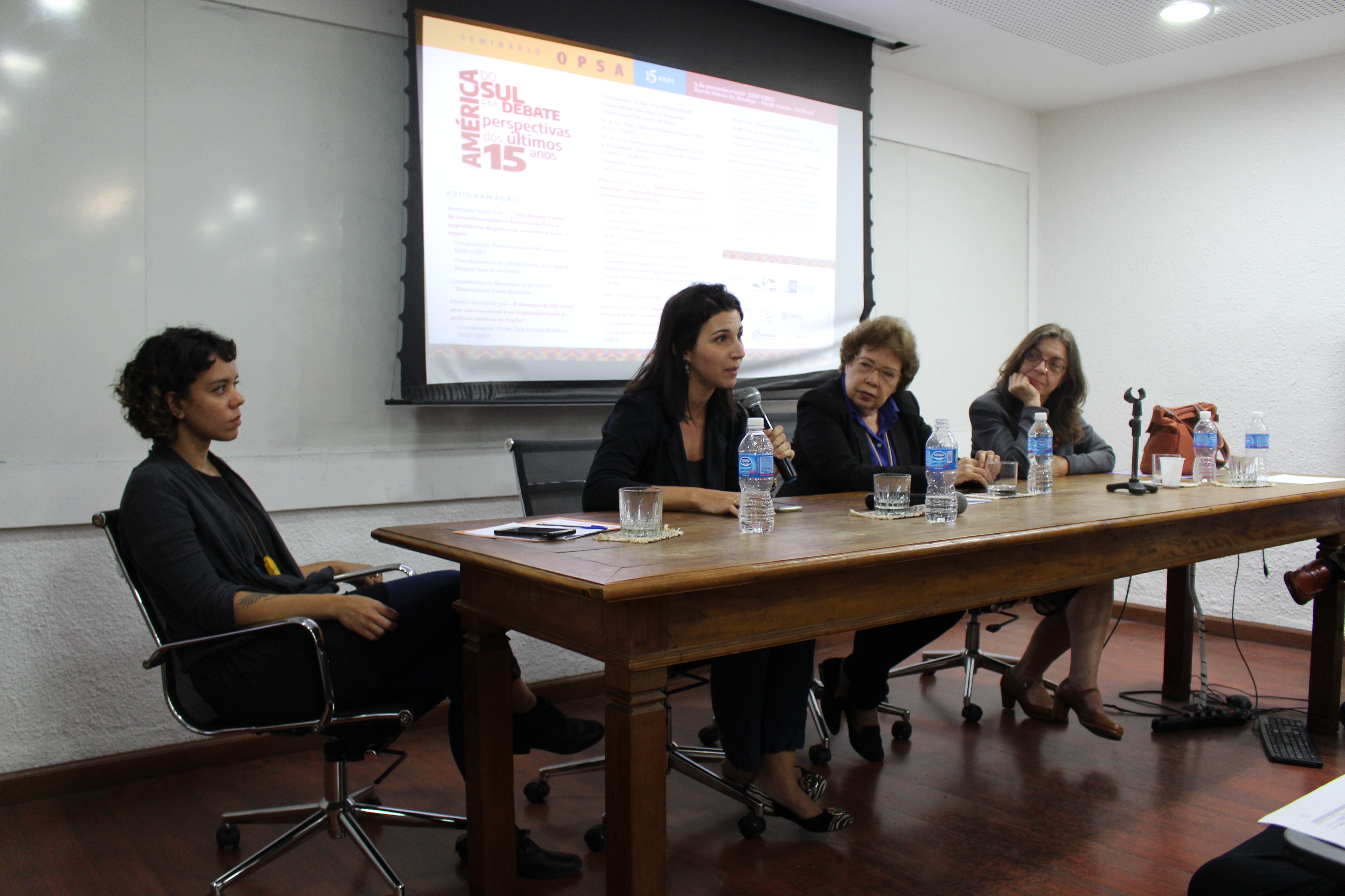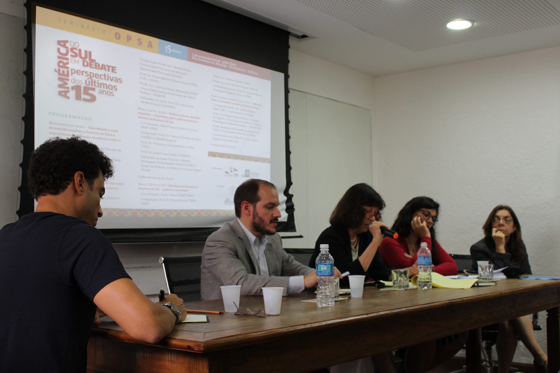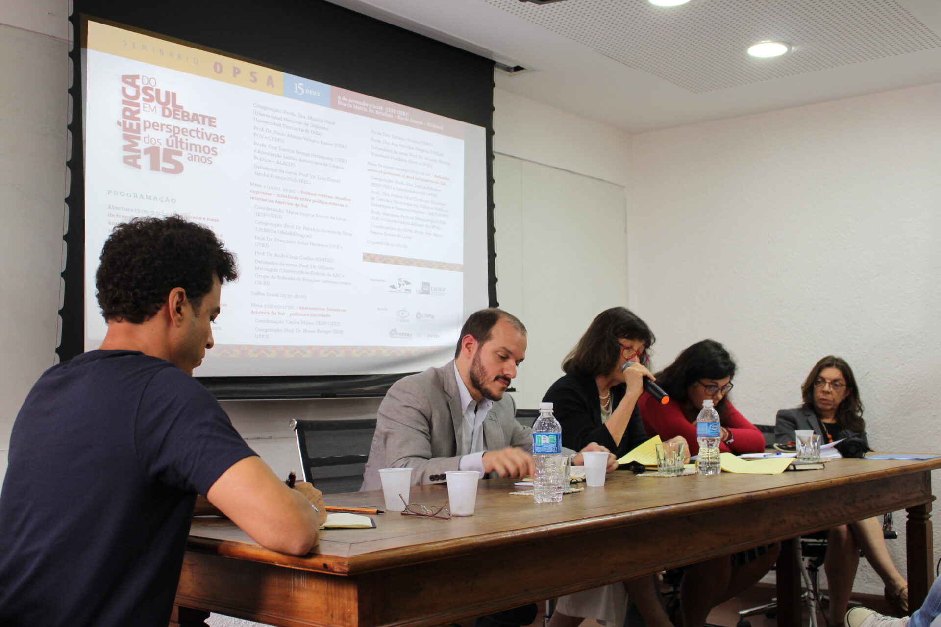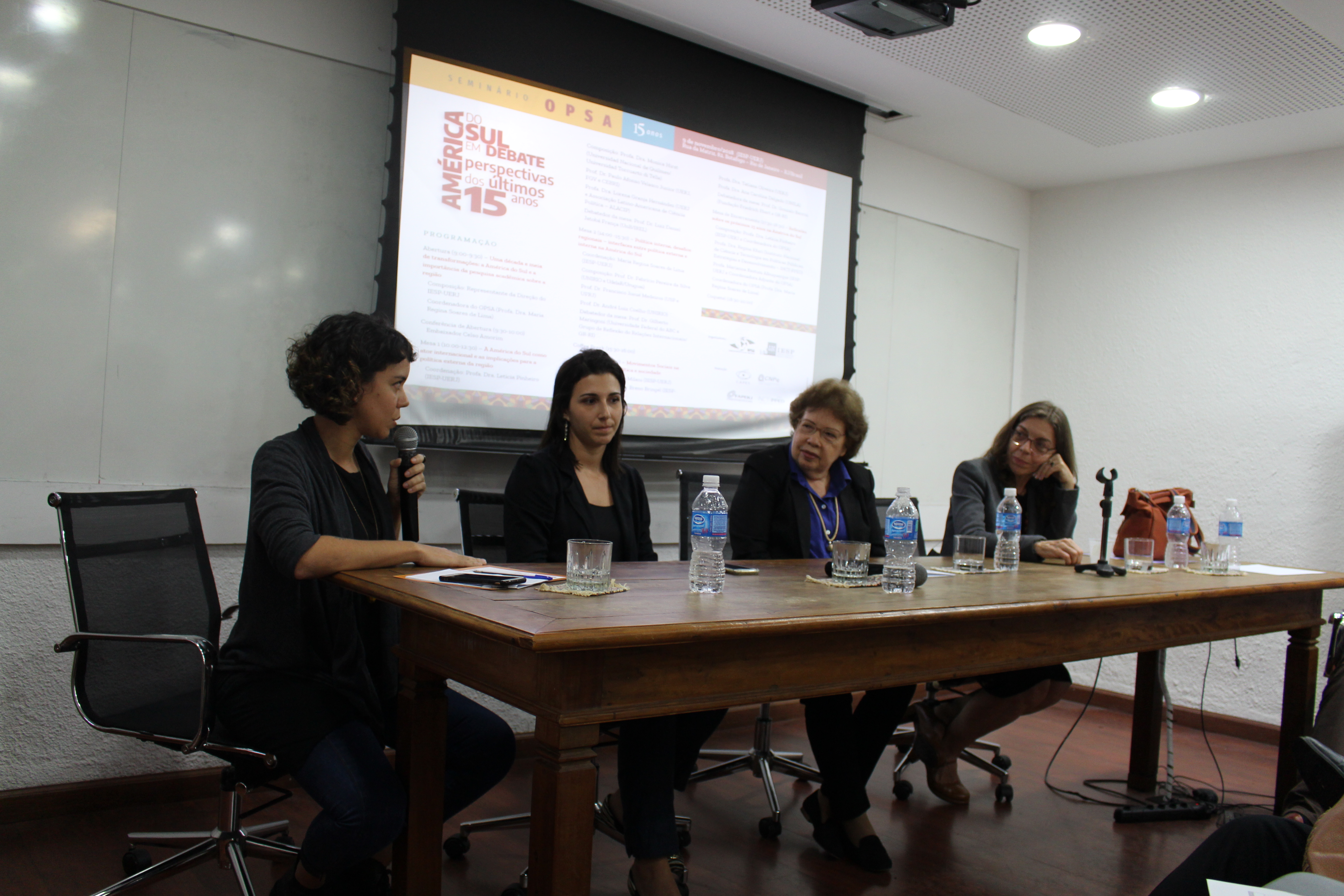 No dia 9 de novembro de 2018 foi realizado o “Seminário OPSA 15 anos – América do Sul em debate: perspectivas dos últimos 15 anos”. O evento contou com conferência de abertura do Embaixador Celso Amorim, além de diversas mesas de debates com professores convidados, muitos deles ex-pesquisadores do OPSA. Em sua mesa final, foi realizada uma homenagem surpresa à coordenadora do OPSA Maria Regina Soares de Lima.