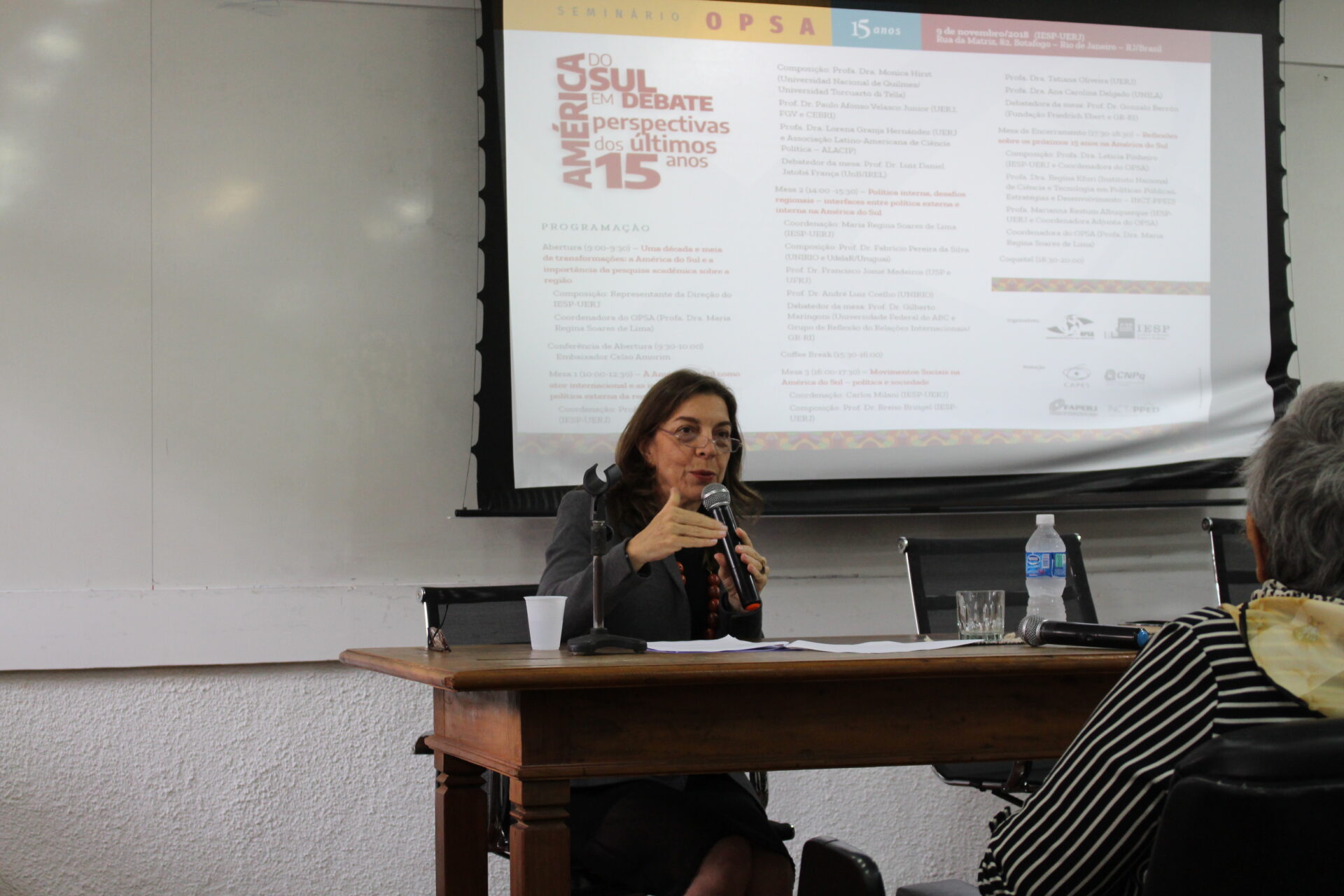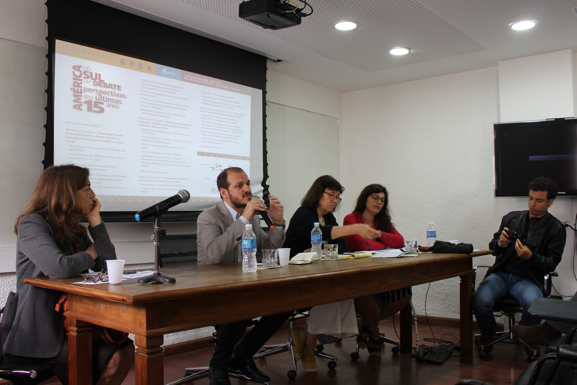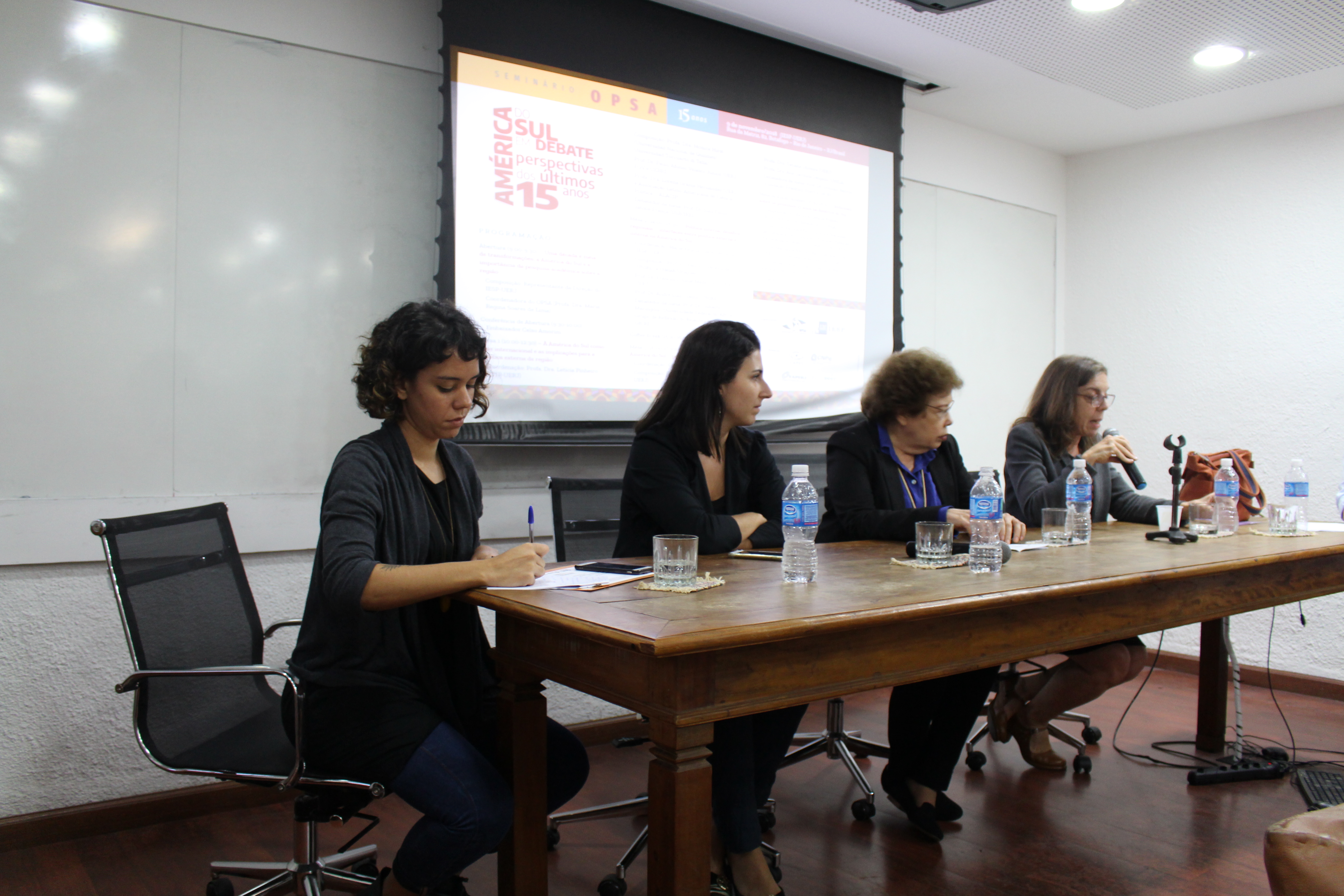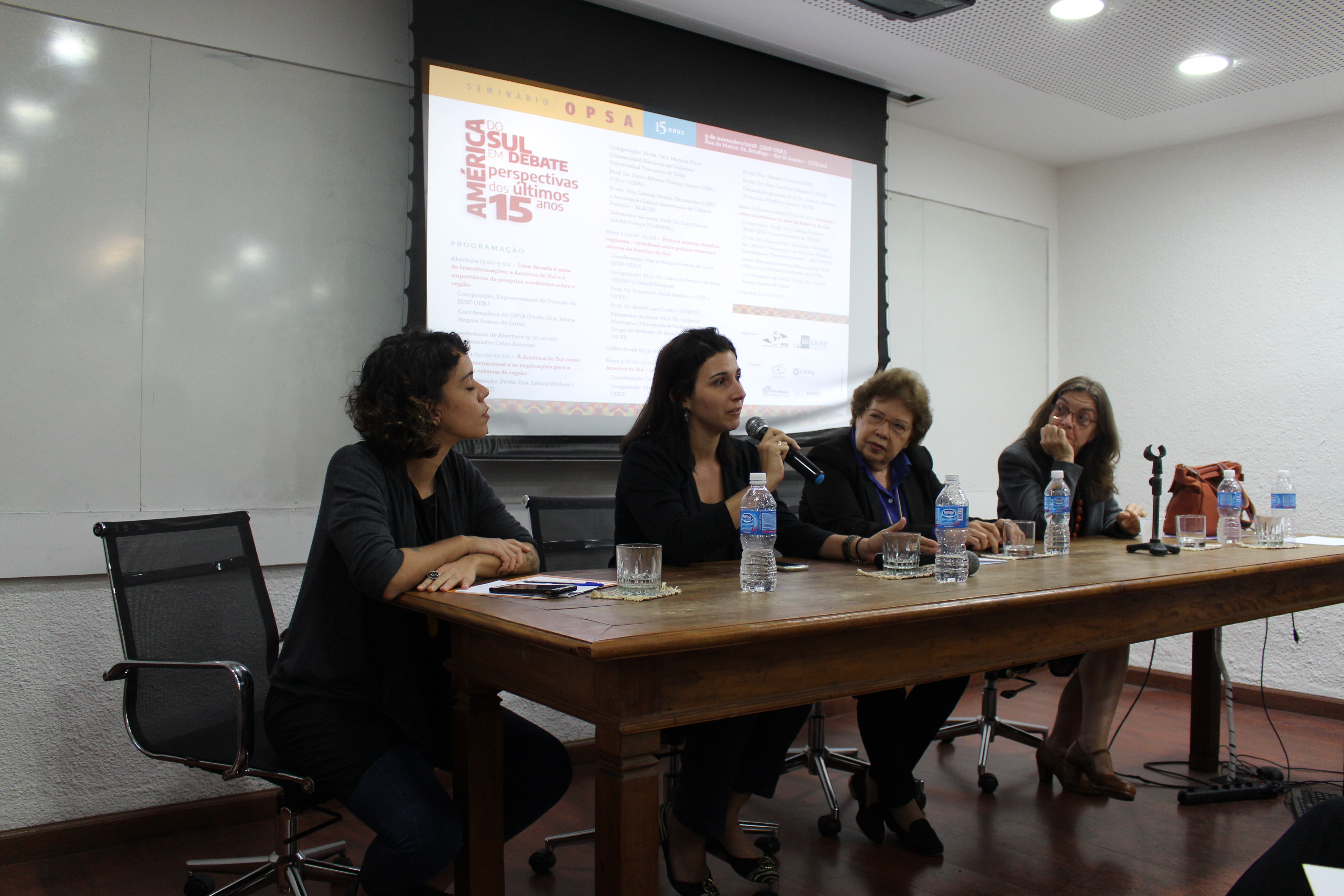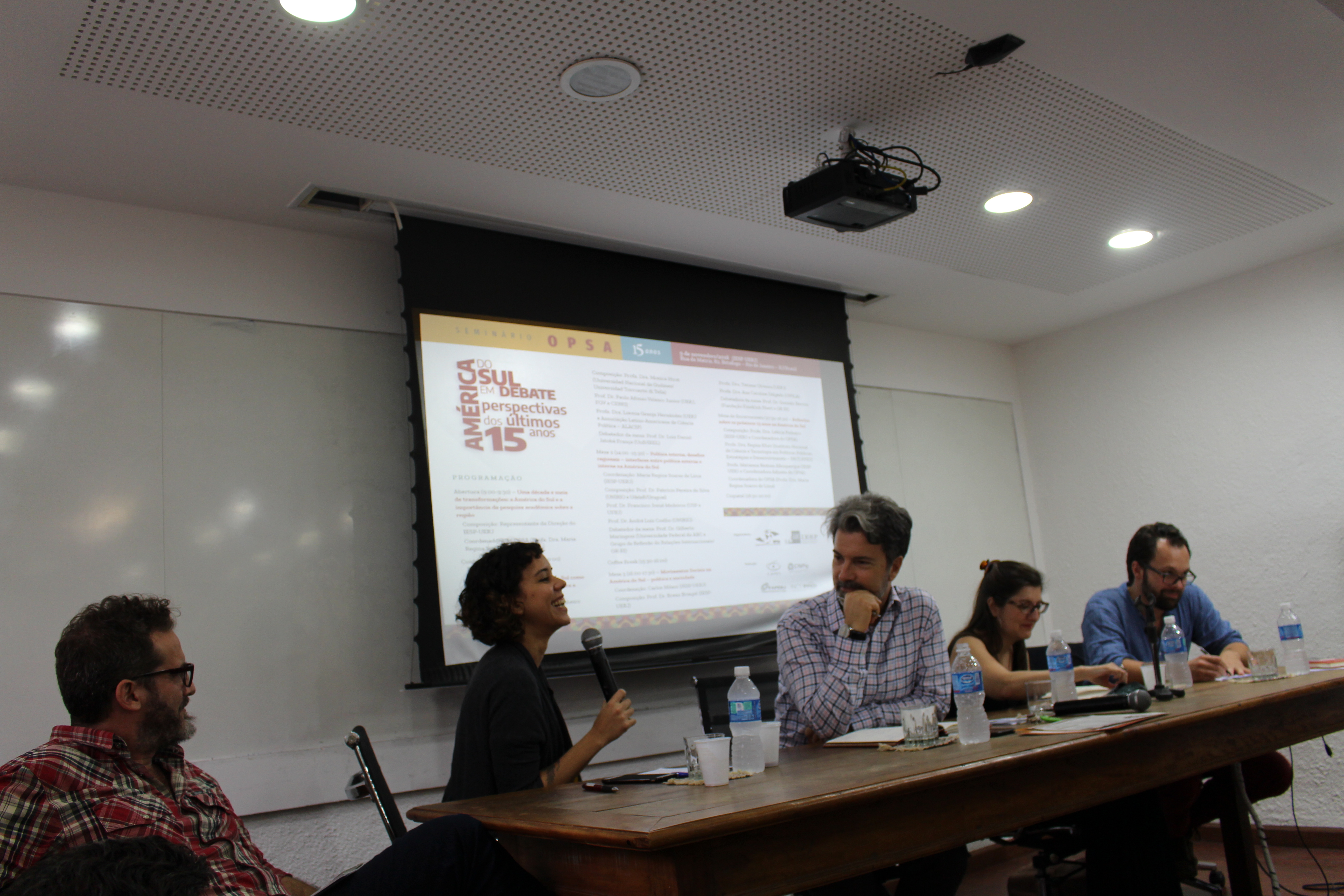No dia 9 de novembro de 2018 foi realizado o “Seminário OPSA 15 anos – América do Sul em debate: perspectivas dos últimos 15 anos”. O evento contou com conferência de abertura do Embaixador Celso Amorim, além de diversas mesas de debates com professores convidados, muitos deles ex-pesquisadores do OPSA. Em sua mesa final, foi realizada uma homenagem surpresa à coordenadora do OPSA Maria Regina Soares de Lima.