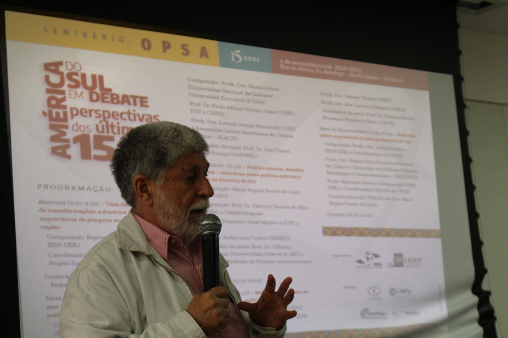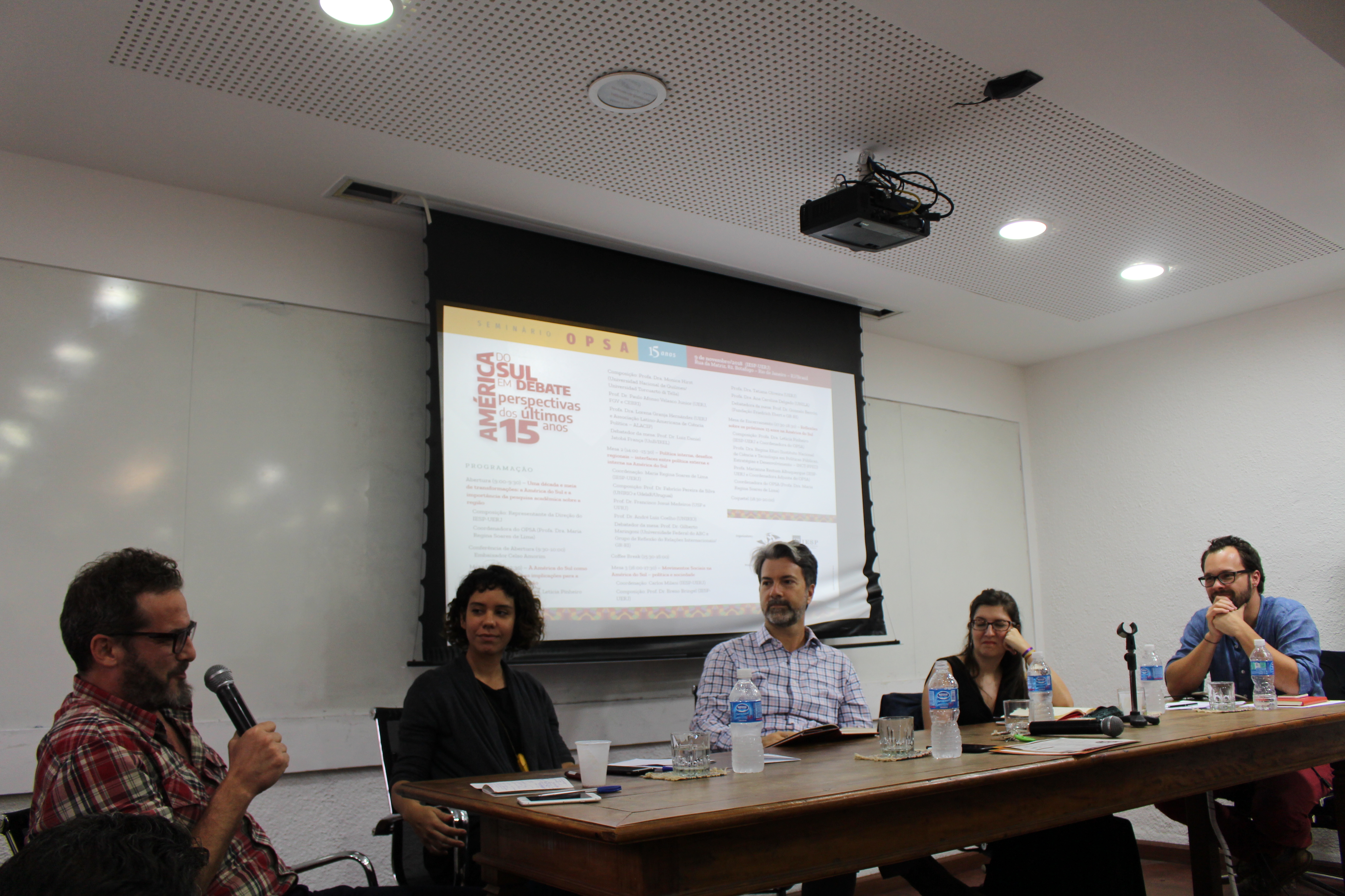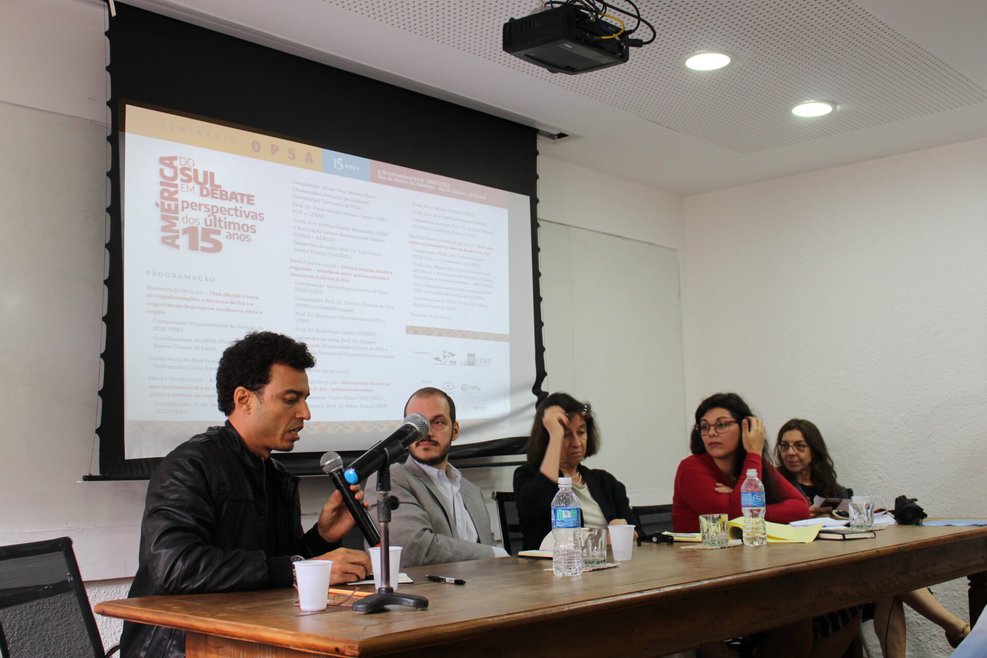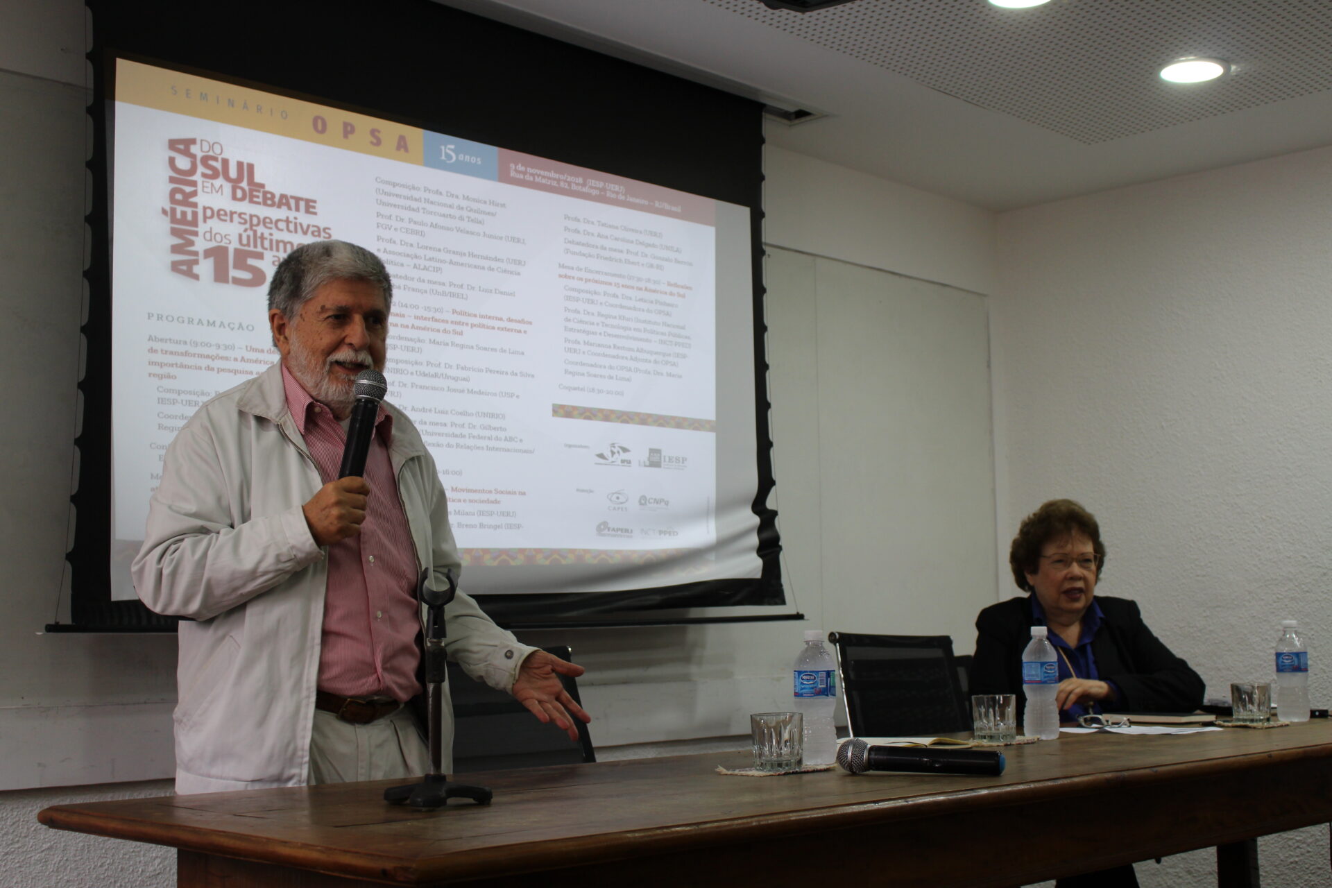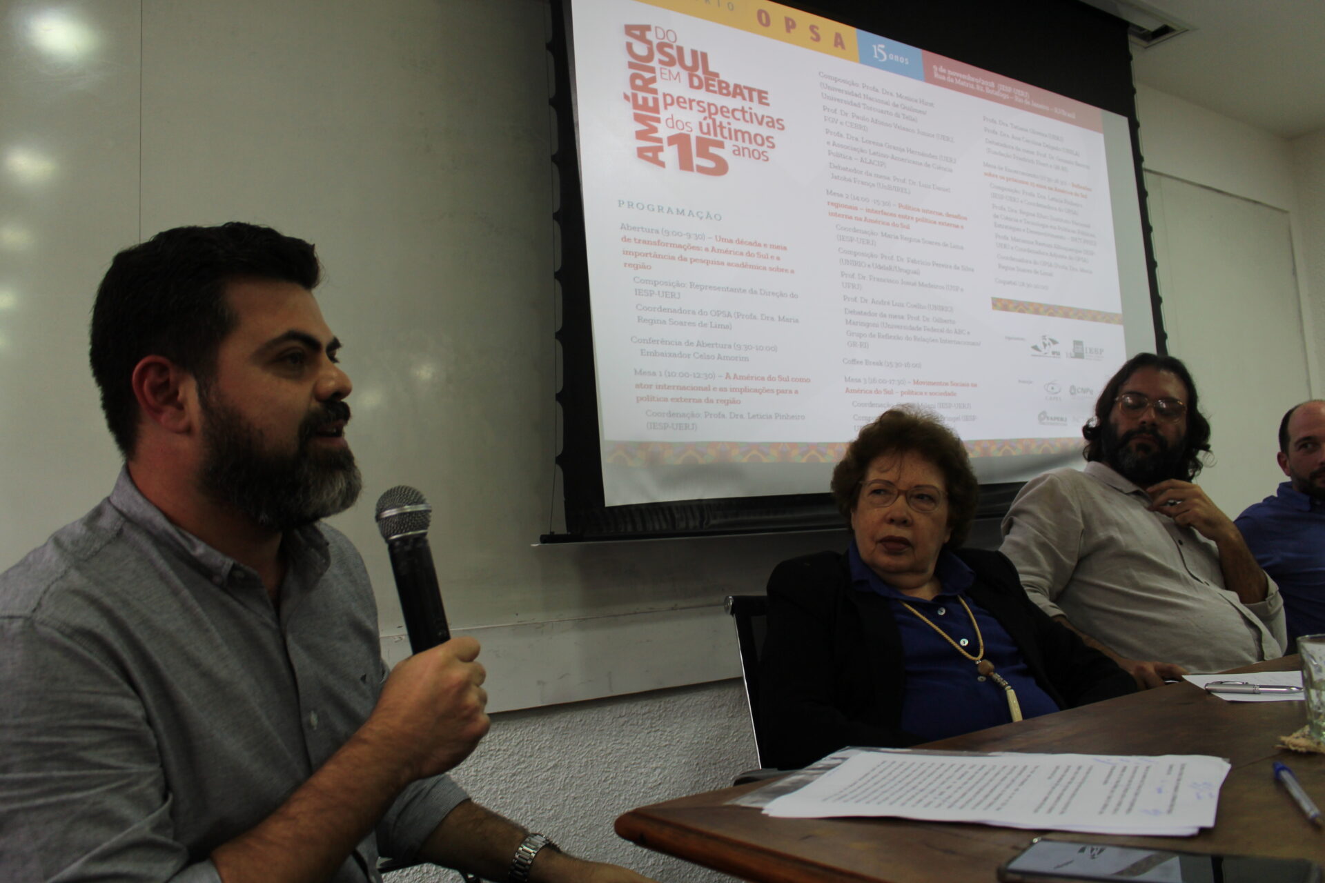 No dia 9 de novembro de 2018 foi realizado o “Seminário OPSA 15 anos – América do Sul em debate: perspectivas dos últimos 15 anos”. O evento contou com conferência de abertura do Embaixador Celso Amorim, além de diversas mesas de debates com professores convidados, muitos deles ex-pesquisadores do OPSA. Em sua mesa final, foi realizada uma homenagem surpresa à coordenadora do OPSA Maria Regina Soares de Lima.