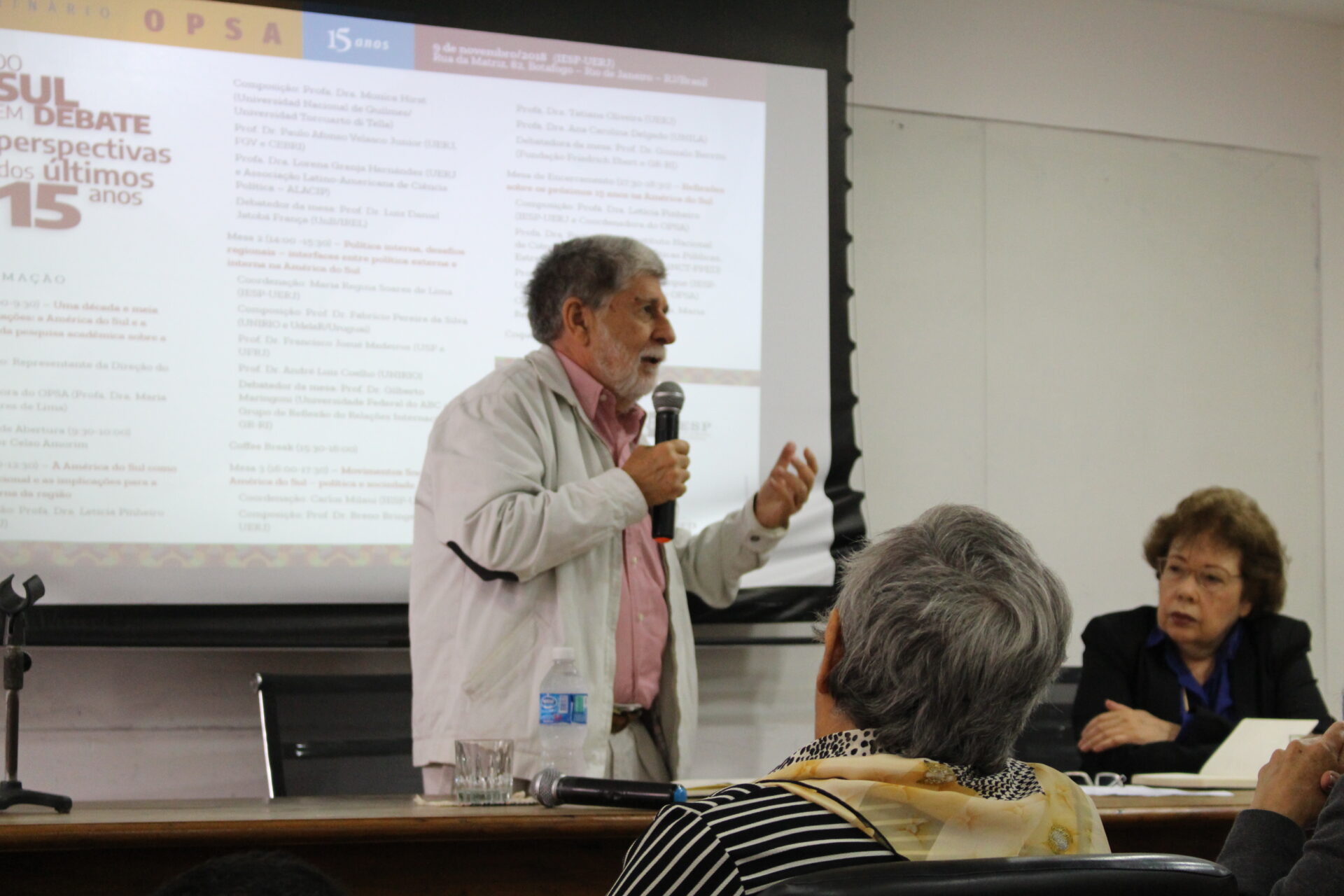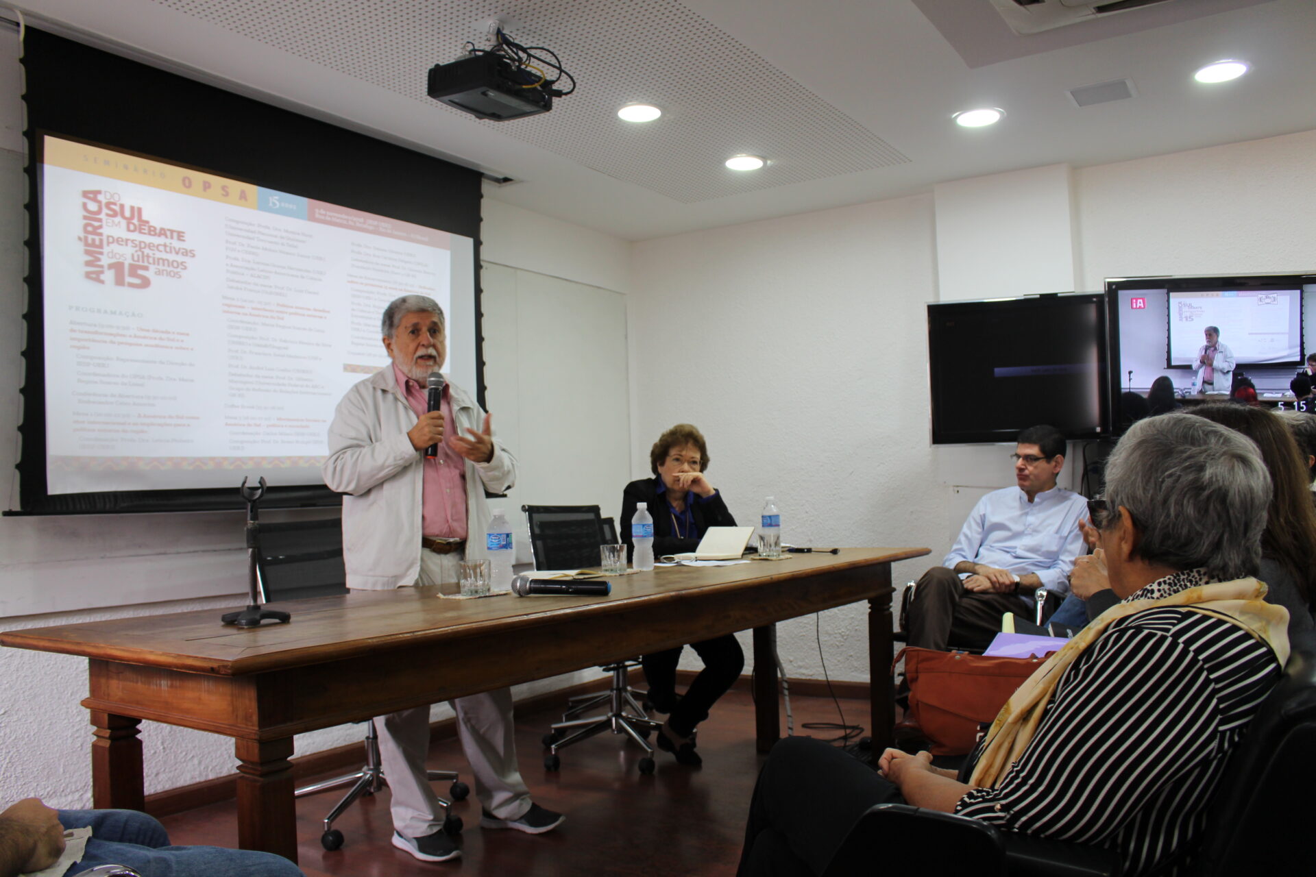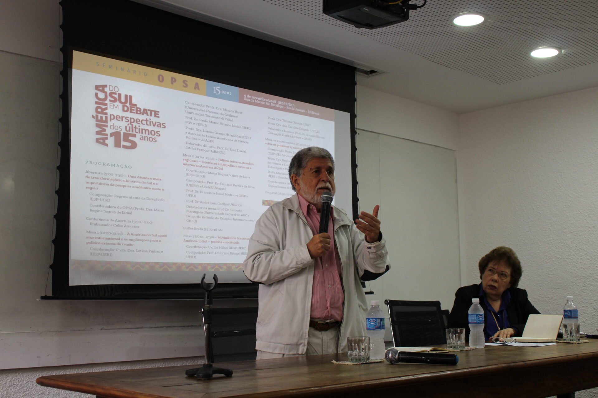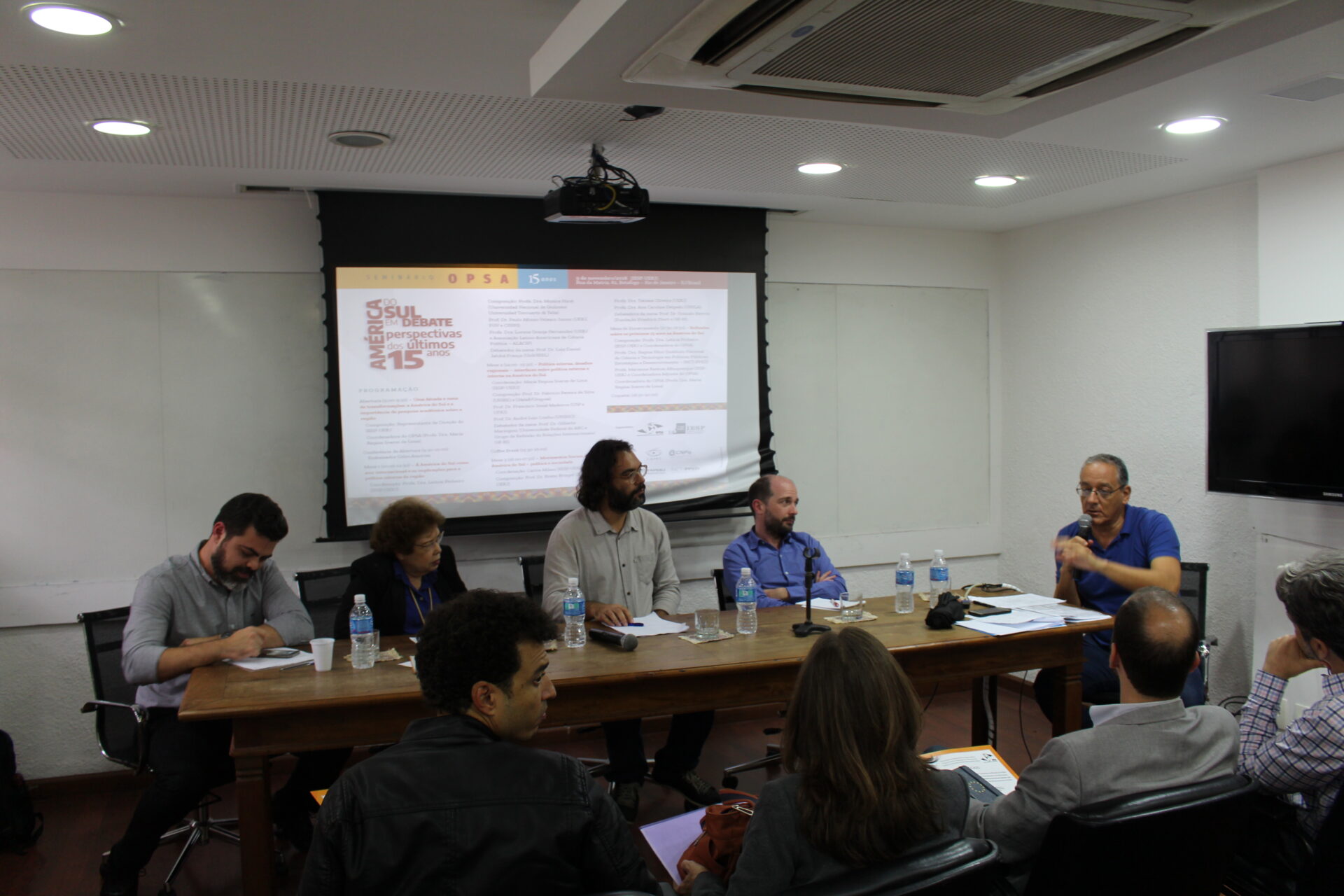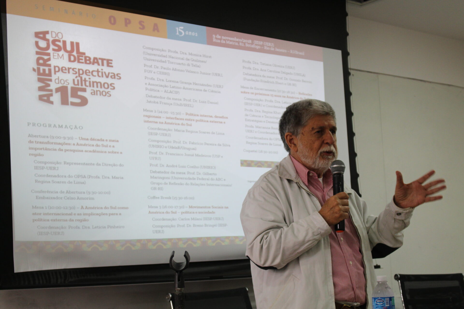 No dia 9 de novembro de 2018 foi realizado o “Seminário OPSA 15 anos – América do Sul em debate: perspectivas dos últimos 15 anos”. O evento contou com conferência de abertura do Embaixador Celso Amorim, além de diversas mesas de debates com professores convidados, muitos deles ex-pesquisadores do OPSA. Em sua mesa final, foi realizada uma homenagem surpresa à coordenadora do OPSA Maria Regina Soares de Lima.